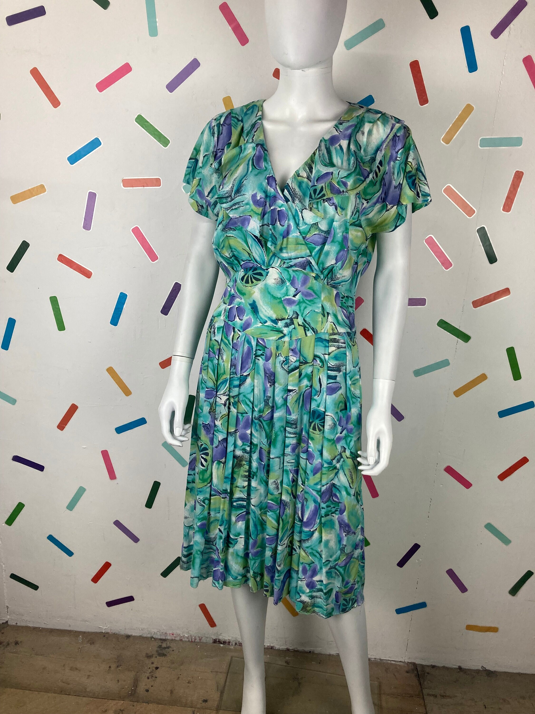 80s vintage abstract fruit print dress with pockets up to 14/16